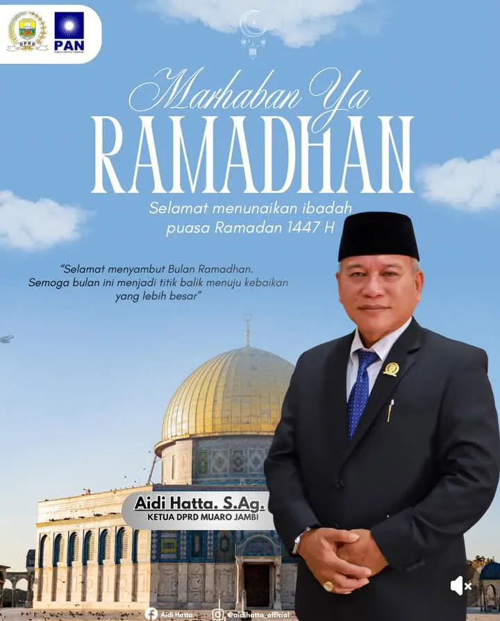 “Marhaban ya Ramadhan. Atas nama pribadi dan pimpinan DPRD Kabupaten Muaro Jambi, saya mengucapkan selamat menjalankan ibadah puasa Ramadhan 1447 H bagi seluruh umat Muslim di Kabupaten Muaro Jambi,” ujarnya.